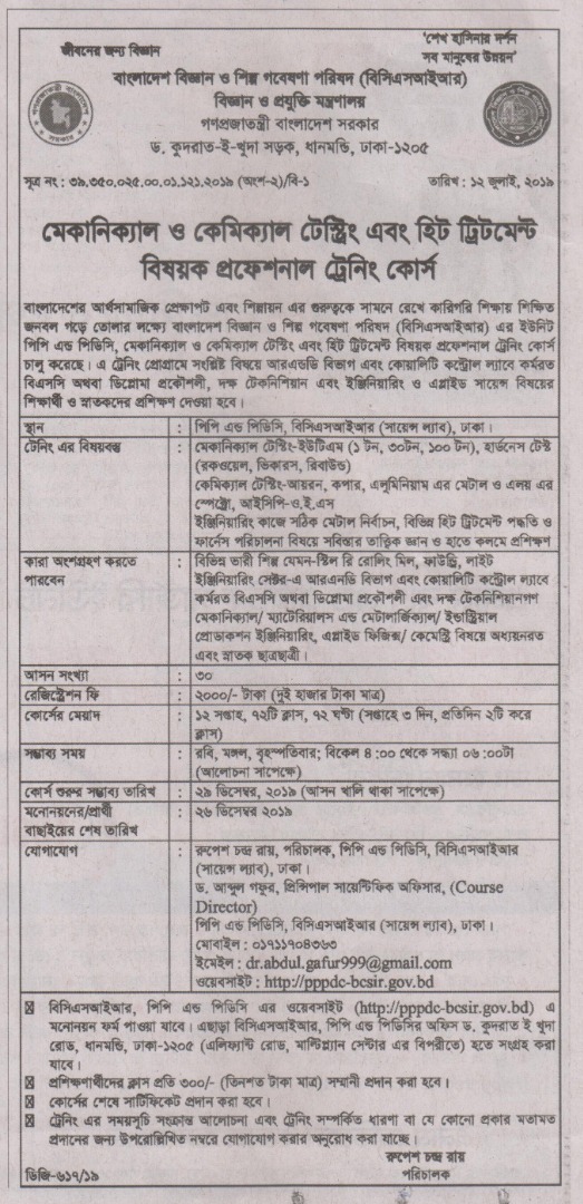মেকানিকাল ও কেমিক্যাল টেস্টিং এবং হিট ট্রিটমেন্ট বিষয়ক প্রফেশনাল ট্রেনিং কোর্স