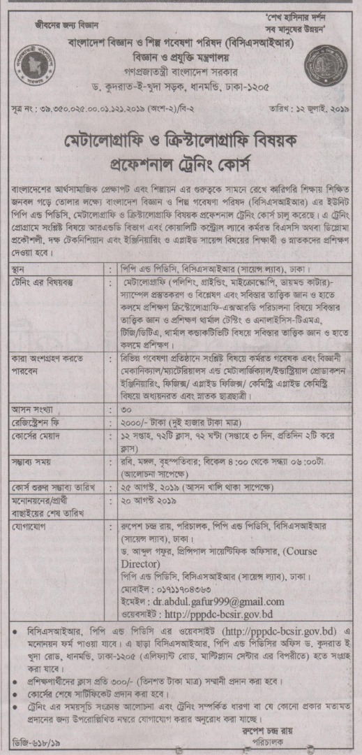 মেটালোগ্রাফি ও ক্রিস্টালোগ্রাফি বিষয়ক প্রফেশনাল ট্রেনিং কোর্স